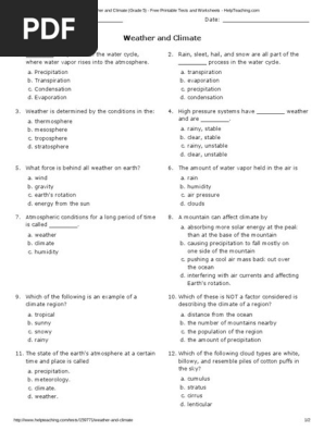 Weather And Climate Worksheets