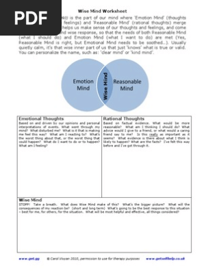 They plan and make decisions based on fact.The wise mind worksheet therapist aid the wise mind.Wise mind is doing the best you can under the circumstances.